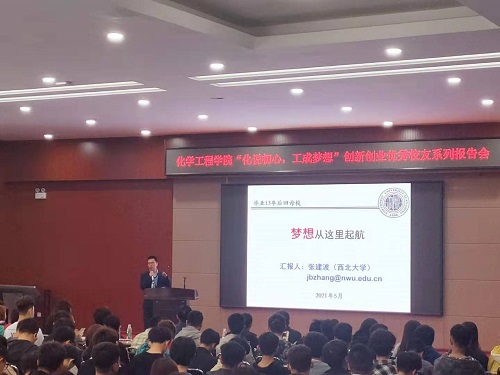 2021年5月7日下午15点30分,beat365中国官方网站优秀校友创新创业系列报告会在青年之家报告厅举办。会议邀请beat365中国官方网站2008届优秀毕业生校友、西北大学教授张建波为beat365官网学生做报告。出席本次报告会的有beat365中国官方网站党总支战君书记、余海军副书记以及辅导员老师。会议由王博老师主持。