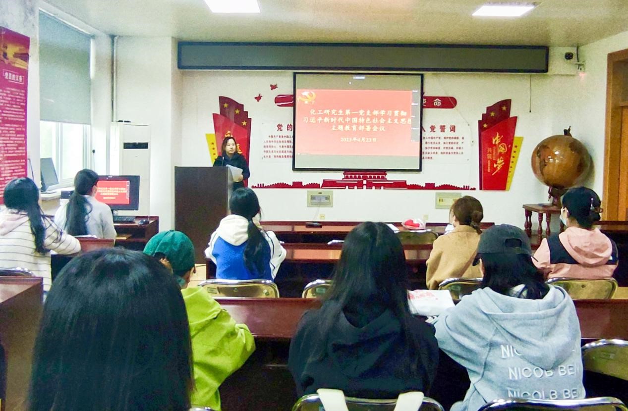 4月23日中午,化工学院研究生第一党支部在稚川楼310召开党员大会,传达学校学习贯彻习近平新时代中国特色社会主义思想主题教育工作会议精神和beat365官网主题教育工作部署会要求,结合工作实际对落实学校主题教育实施方案进行再部署、再动员。支部全体党员以线上线下相结合的形式参加会议,会议由支部书记李昱主持。