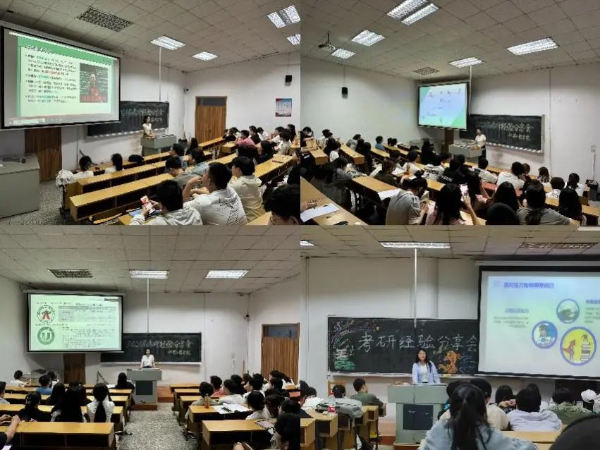2024届考研成功上岸的张岩、王如玉、杨景惠、季轲良、王方雯婷、袁杰、左家珺、周欣迪八位优秀学子,结合自身考研经历,从院校选择、学习方法、时间规划、心态调整及复试调剂等多个方面向同学们做了经验分享。在交流互动环节,针对在座学生在备考过程中遇到的困惑,他们逐一进行了细致的解答和分析,真正做到有的放矢、行之有效。
