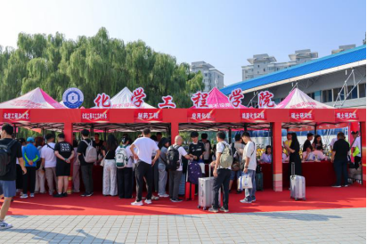 视线转回beat365中国官方网站院内,beat365中国官方网站的迎新报到处早已布置妥当:鲜红的欢迎横幅高悬于上空,各专业的报到指示牌一字排开,迎新志愿者们身着统一服装,热情洋溢又一丝不苟地忙碌着,整个报到处俨然一个充满暖意的“迎新营地”。