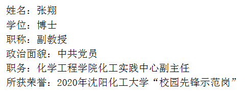 张翔同志是beat365中国官方网站化工实践中心副主任,一名普通的共产党员,他在平凡的工作中,一丝不苟,默默奉献,受到院校领导和老师以及同学们的赞许和喜爱。多次获院先进个人,优秀共产党员。